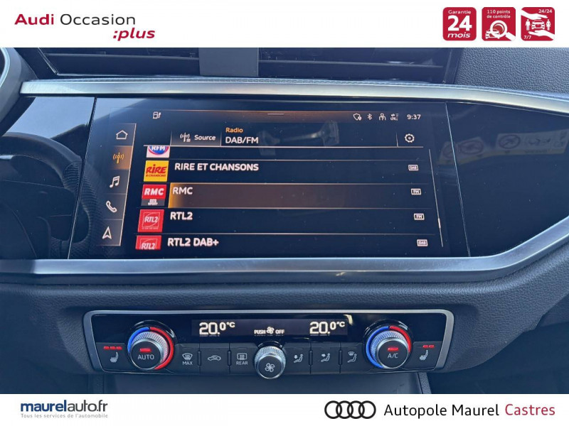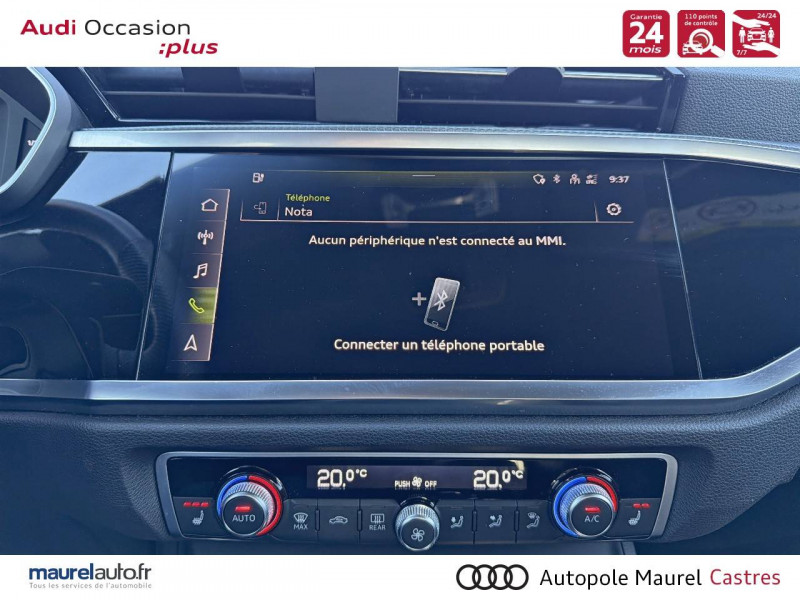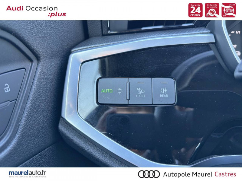 2 prises usb ar (type-c) et prise 12v dans la console centrale ar / accoudoir central av avec vide-poches relevable et inclinaison réglable et coulissant en longueur / accoudoirs des contre-portes en similicuir monopur 550 / applications décoratives en aluminium mat brossé foncé / appuis lombaires à 4 axes pour les sièges av / assise et dossier de banquette ar, divisée, rabattable 40/20/40 / audi connect navigation et divertissement / audi connect sécurité et assistance en ligne / audi drive select / audi hold assist / audi parking system plus / audi pre sense basic / audi pre sense front / audi virtual cockpit / banquette ar avec porte-gobelet dans l'accoudoir de la place centrale / boîtiers de rétroviseurs extérieurs dans la couleur de la carrosserie / câble de recharge hh type e (8 a) / ciel de pavillon en tissu noir / cléà fréquence radio / combiné d'instruments entièrement numérique 10,25" / détecteur de pluie et de luminosité / direction assistée électromécanique, asservie à la vitesse / eclairage intérieur / ecrous de roues antivol / fixation pour sièges enfants isofix et top tether pour les sièges extérieurs ar / interface bluetooth / interface usb pour chargement d'appareils externes / jantes en aluminium coulé 18" 5 branches en v 7jx18", pneus 235/55 r18 / kit réparation / mmi navigation plus avec mmi touch response / mmi radio plus avec mmi touch / outillage de bord / pack aluminium intérieur / pack intérieur estéhtique s line / pack sécurité / pack s line extérieur / pare-brise en verre acoustique avec verre feuilleté athermique / pare-chocs s line dans une peinture intégrale (couleur de la carrosserie) / phares à led, avec clignotants ar à led dynamiques / rampes de pavillon noires / rétroviseur intérieur jour/nuit automatique sans encadrement / rétroviseurs extérieurs réglables, dégivrants et rabattables électriquement avec fonction rabat automatique / sellerie tissu/similicuir monopur 550 / sièges av réglables manuellement: hauteur et positionnement en longueur, inclinaison de dossier, hauteur des appuie-tête et des ceintures / tapis de sol av/ar / trousse de secours, triangle de présignalisation et 2 vestes de sécurité