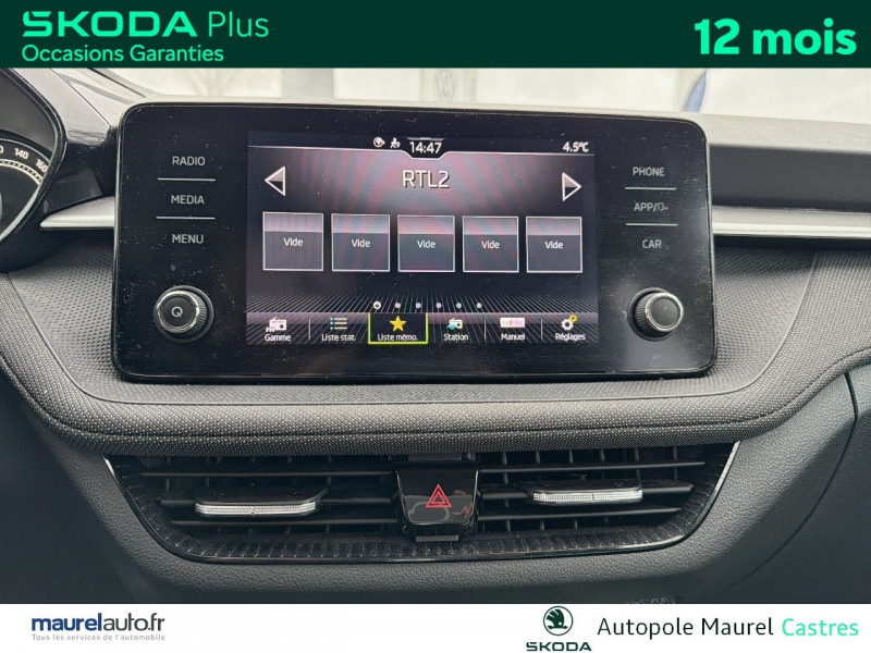 allumage automatique des feux de détresse en cas d'accident / eclairage des plaques d'immatriculation à led / jantes alliage 15'' rotare argent (185/65 r15) / phares av à led (feux de route, feux de croisement et feux de jour) / 2 ports usb-c à l'av (avec apple connectivity) / 3ème appuie-tête ar à la place centrale / 4 hp av + 2 hp ar : skoda surround / 4 poignées de maintien intégrées au pavillon (2 avec crochet à cintre) / accoudoir central av avec surpiqûres, portes gobelets / assistance 24 /24 h pendant 7 ans / augmentation du réservoir à 50 l / aumônières au dos des sièges av et pochettes téléphone au dos des sièges av / avertisseur sonore 1 ton / boîte à gants inférieure côté passager fermée / boîtier de rangement sous le volant / care connect 3 ans / ceintures de sécurité 3 points av/ar, réglables en hauteur à l'av / compartiment de rangement dans le coffre à gauche / contour de calandre chromé / crochets dans le coffre / direction assistée électromécanique / e-call+ / ecrous antivol / eléments couleur chrome/argent : poignées intérieurs de portes, levier de vitesse, buses de ventilation, bouton de frein à main, contour des compteurs / esc (correcteur électronique de trajectoire) incluant abs, msr, asr, eds, hba, xds+, mkb / fixations isofix pour siège enfant aux places ar extérieures et sur le siège passager av / gratte-givre avec contrôle de l'usure des pneumatiques (trappe à carburant) / insert décoratif gris / grain satin noir / lane assist (assistant de maintien dans la voie) / lumière dans le coffre / miroir de courtoisie dans les pare-soleil conducteur et passager av / ordinateur de bord grand écran à affichage maxi-dot / pare-chocs av/ar couleur carrosserie / poignées de portes et coques de rétroviseurs couleur carrosserie / porte-ticket dans le pare-soleil côté conducteur / porte-ticket sur pare-brise / prise 12 v type allume-cigare dans la console centrale / radio bolero 8'' (bluetooth, 6 hp, am/fm, smartlink incluant mirrorlink, android auto, carplay) / radio numérique dab (digital audio broadcasting) / rangement de parapluie dans la portière conducteur (parapluie inclus) / rangement porte-lunettes / réflecteurs sur pare-chocs ar / rétroviseur intérieur électrochromatique / rétroviseurs extérieurs électrochromatiques côté conducteur / signal acoustique et visuel d'oubli de ceinture de sécurité / signal sonore d'oubli d'extinction des feux / skoda connect : accès à certaines donées du vehicule à distance 3 ans (care connect) / tapis de sol av/ar