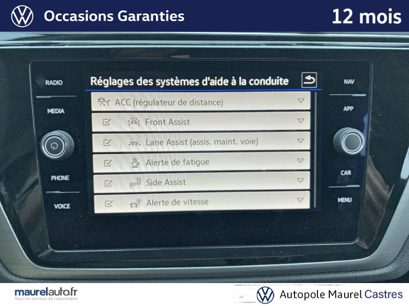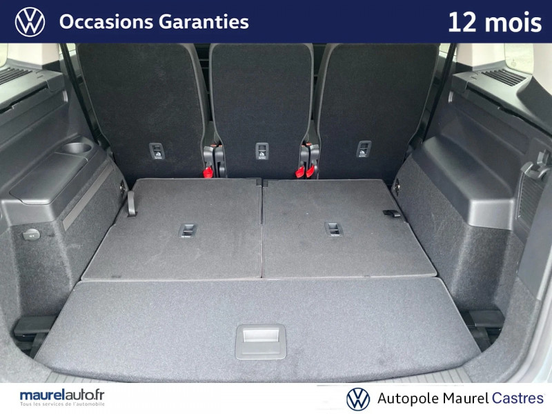 activation automatique des feux de détresse lors d'un freinage d'urgence / aide au stationnement av/ar avec signaux sonores et visualisation de la distance des obstacles sur l'écran / boîte de vitesse automatique (dsg7) / climatisation automatique "air care climatronic", 3 zones avec filtre anti-allergènes, réglable séparément pour conducteur et passager et les sièges ar / console de pavillon avec un grand compartiment de rangement (incompatible avec le toit ouvrant) / eclairage à led de la plaque d'immatriculation ar / jantes en alliage léger 17 "salvador" gris métallique 215/55 r17 avec écrous antivol / pack easy access plus ouverture du coffre main libre ?easy open and easy close? et ?keyless access? avec safelock / pack hiver - sièges av chauffants - indicateur de niveau de lave-glace - lave-phares / pack visibilité allumage automatique des feux avec fonction 'coming home / leaving home', rétroviseur intérieur jour/nuit automatique, capteur de pluie avec essuie-glace automatique / projecteurs à led iq.light avec feux de jour à led et feux de virage / rétroviseurs extérieurs électriques, à réglage jour/nuit automatique et asphérique côté conducteur et abaissement côté passager lors d?une marche ar / système front assist : système de freinage automatique en cas de détection d'obstacle / système navigation & infotainment "discover media" avec écran tactile 8?? / système start/stop automatique et dispositif de récupération de l'énergie de freinage / 2 ports usb-c compatibles apple / accoudoir central av réglable avec compartiment de rangement, porte-gobelet intégré, et prise 12 v pour les passagers ar / airbags frontaux av (airbag passager désactivable par clé) / airbags rideaux pour 3ème rangée / airbags rideaux pour les 1ère et 2ème rangées / alarme antivol périmétrique et volumétrique / app-connect sans fil - affichage et contrôle via l?écran tactile de la voiture, du contenu, des fonctions et des applications compatibles présents sur le smartphone (compatibilité avec les systèmes apple carplay, apple carplay sans fil, android auto, mirrorlink). seuls les contenus validés et utilisables en «main libre» peuvent fonctionner. / appuis-tête (3) réglables en hauteur sur la 2ème rangée de sièges / avertisseur sonore et témoin d'oubli du port de la ceinture de sécuritéà l'av et témoin d'oubli du port de la ceinture de sécurité pour la 2ème rangée / boitiers des rétroviseurs extérieurs couleur carrosserie / calandre noire avec 3 lamelles chromées / ceintures de sécurité (3) trois points sur la 2ème rangée de sièges / ceintures de sécurité av 3 points à enrouleur réglables en hauteur avec prétensionneurs / compartiment de rangement sous la planche de bord / compartiment de rangement sur la planche de bord avec trappe / compartiment de rangement à gauche du volant / correcteur électronique de trajectoire esp, système d'antiblocage de roues abs, blocage électronique de différentiel eds, antipatinage électronique asr, régulateur de couple msr et assistance au contrebraquage / couvre-coffre enroulable et amovible / câble adaptateur usb-c vers usb-a / digital cockpit / direction électromécanique à assistance variable en fonction de la vitesse / dossier du siège passager rabattable (fold flat) / eclairage de jour / entourage des aérateurs chromées / essuie-glace av avec commande d'intermittence / fatigue détection : système de détection de fatigue du conducteur / frein à main électrique / hill-hold : assistant au démarrage en côte grâce à une fonction anti-recul / interface téléphone confort avec chargeur induction / keyless access (système de verrouillage/déverrouillage sans clé et démarrage avec bouton start/stop) / kit de réparation pour crevaison (compresseur 12 v et bombe anti-crevaison) / lane assist: assistant de maintien dans la voie / mesures de protection des piétons et des cyclistes étendues / miroir de courtoisie éclairé sur les pare-soleil / oeilletons de fixation (4) dans le coffre / pare-chocs peints dans la couleur de carrosserie / plancher de coffre modulable / poignées de portes couleur carrosserie / porte-bouteille dans toutes les portes (1,5 l à l?av et 1 l à l?ar) / pre safe assist - système proactif de protection des passagers / prise 12 v dans la console centrale ar / prise 12 v dans le coffre / projecteurs antibrouillard av avec éclairage statique d'intersection / préparation pour "vw connect" et "vw connect plus" vous permet d?obtenir des informations sur votre véhicule directement sur votre smartphone. accès au concessionnaire volkswagen le plus proche, aperçu de toutes les données de votre véhicule et des prochaines maintenances à effectuer, application totalement gratuite et facile à utiliser, produit 100% compatible avec votre volkswagen et garantie constructeur préservée, sécurité totale des données grâce à un cryptage / préparation pour fixation de sièges enfants suivant norme "isofix" pour tous les 3 sièges de la 2ème rangée / rampe de pavillon anodisées / service d'appel d'urgence / side assist : assistance de changement de voie avec détecteurs d?angle mort / sièges av confort réglables en hauteur avec réglage lombaire / sièges individuels (3) de la 2ème rangée réglables en longueur (200 mm) et rabattables / spots de lecture (2) à l'av et à l'ar / tablette pliable au dos des sièges conducteur et passager av / tapis de sol / tiroir sous les sièges av / triangle de présignalisation / verrouillage centralisé avec télécommande à fréquence radio par clé rétractable / xds : système agissant comme un différentiel autobloquant électronique permettant une meilleure motricité en courbe grâce à une répartition optimale de la puissance et du couple sur les roues av