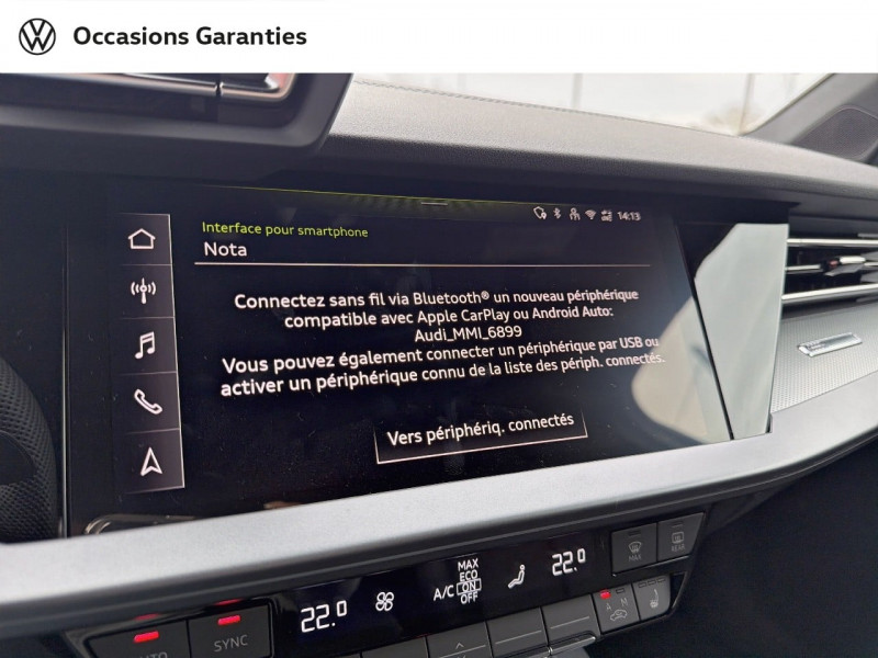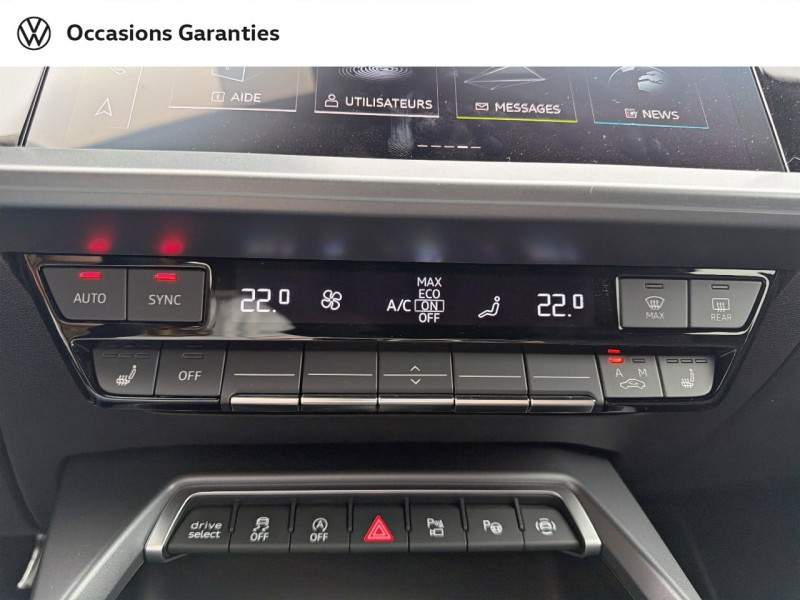 applications décoratives en aluminium spectre foncé (au tableau de bord) / audi park assist : cherche à l'aide de capteurs à ultrasons les places de stationnement (bataille et créneau) appropriées le long de la chaussée, calcule le créneau idéal et gère le braquage automatiquement / boîte automatique s tronic 7 vitesses / jantes en alliage léger 17'' style "wing" à 5 bras 7,0 j x 17", pneus 205/55 r17 / pack assistance m caméra de recul / pack brillance extérieur baguette sur les entourages de vitre en aluminium anodisé, revêtement noir brillant sur les montants de pavillon centraux et ar / pack connectivité audi virtual cockpit plus, mmi navigation plus, audi connect, audi sound system, audi smartphone interface / pack èclairage d'ambiance - module de toit, à l'av et à l'ar, y compris les liseuses - miroirs de courtoisie éclairés - eclairage des caves à pieds, à l'av et à l'ar - eclairage du compartiment à bagage / phares à led avec clignotants dynamiques ar / rampes de pavillon en aluminium, anodisées / rétroviseur intérieur jour/nuit automatique sans encadrement / rétroviseurs extérieurs réglables, dégivrants, rabattables électriquement avec fonction rabat automatique / volant cuir multifonctions plus 3 branches avec palettes de commande au volant / 2 ports de charge usb ar / accoudoir central coulissant en longueur, avec inclinaison réglable / airbags latéraux à l'av et système d'airbags de tête / appel d'urgence & service audi connect / appui lombaire à 4 axes pour les sièges av : réglages électrique, horizontal et vertical / audi drive select / audi phone box light / audi pre sense front / boîtiers de rétroviseurs extérieurs dans la couleur de la carrosserie / clé confort incluant déverrouillage du coffre par capteur (sans safelock) - accès et démarrage du véhicule mains libres (keyless access) - déverrouillage du hayon via la touche "coffre" de la télécommande ou en simulant un mouvement de pied dans la zone à l'ar du véhicule (ouverture et fermeture). / cléà fréquence radio (sans safelock) verrouillage central "keyless-go" verrouille et déverrouille les portes, le capot de coffre et la trappe à carburant ; incluant ouverture/fermeture confort des vitres / commande de désactivation de l'airbag passager av / contrôle de la traction (tcs) / câbles de recharge pour téléphone portable compatibles apple et android / direction assistée électromécanique, asservie à la vitesse / dispositif de limitation de vitesse / détecteur de pluie et de luminosité / détection de signalisation routière par caméra / ecrous de roues antivol / i-size et top tether pour les sièges ar extérieurs / kit réparation / mmi radio plus / outillage de bord / pare-brise à vitrage acoustique / rappel de ceinture de sécurité avec dispositif ar de détection d'occupation du siège / sièges av réglables manuellement hauteur et positionnement en longueur, inclinaison de dossier, hauteur des appuie-tête et des ceintures / système start & stop avec récupération d'énergie au freinage / sécurité enfant électrique / tapis de sol av/ar / trousse de secours, triangle de présignalisation et 2 vestes de sécurité