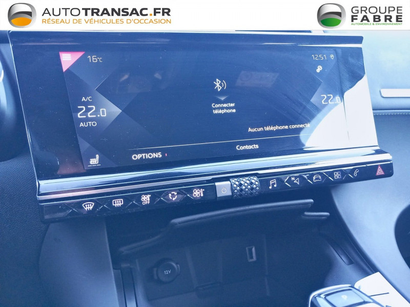 abs avec répartiteur électronique de freinage (ref) et aide au freinage d'urgence (afu) + aide au démarrage en pente / aide au stationnement av/ar et caméra de recul / allumage automatique des feux avec commutation automatique des feux de route / contrôle électronique de stabilité de l'attelage / ds pixel led vision 3.0 / eclairage de cave à pieds à led / essuie-vitre av à déclenchement et cadencement automatiques + buses de lavage / frein de stationnement électrique automatique / freinage d'urgence automatique piloté par caméra et radar / jantes alliage 19'' edinburgh, pneus 235/50 r19 v / navigation 3d connectée information trafic en temps réel, prix des carburants,parkings et zones de danger.3 ans inclus / pédalier et le repose-pied aluminium / toit ouvrant panoramique électriquee entrebaillant, ouvrant, occulteur motorisé / accoudoir central en toile ds avec rangement / accès et démarrage mains libres / airbags frontaux (passager déconnectable), latéraux av, rideaux av/ar / alerte attention conducteur / badge ds chromé sur le capot / centre de roue noir brillant / combiné numérique 12.3" hd / contrôle dynamique de stabilité (esp) avec antipatinage des roues (asr) / double antennes / ds drive assist / ds iris system système d'infotainment personnalisable de dernière génération / ds wings chromées / détection de sous-gonflage / eclairage d'accueil et d'accompagnement / eclairage polyambient / ecran tactile capacitif 12'' hd / entourage des vitres latérales chromé / feux ar 3d (traitement écailles) avec indicateur de changement de direction défilant / fixations isofix à la place passager av et aux places latérales ar inclut top teather / grille de calandre noir brillant avec pampilles chromées / hayon motorisé avec accès bras chargés / jonc supérieur de volet noir brillant avec lettrage 'ds automobiles' chromé / jonc sur jupe ar chromé / kit de dépannage / lève-vitres av/ar électriques, séquentiels et avec fonction antipincement / mirror screen sans fil via wifi compatible apple carplay et android auto / monogrammes ar chromé / montre rotative b.r.m. r180 / pare-brise chauffant / pare-brise teinté acoustique / poignées extérieures couleur caisse avec insert chromé / prises 12 v 1 prise dans le rangement av de la console centrale et 1 prise dans le coffre / prises usb 1 prise usb type c dans le rangement de la console centrale et 2 prises usb type a pour les passagers ar / prédisposition plancher modulable à 2 positions / rétroviseur intérieur électrochrome sans cadre / rétroviseurs extérieurs avec embase couleur caisse et coque noir brillant / rétroviseurs extérieurs électriques dégivrants, rabattables électriquement fonction électrochrome côté conducteur, projection au sol du logo ds, indexéà la marche ar côté passager / sabot av chromé / seuil de coffre chromé / seuils de portes trame ds / sièges av électriques réglage électrique du siège, réglage lombaire pneumatique, réglage mécanique du nez de coussin / sos & assistance service inclus pendant 10 ans / surtapis av/ar / surveillance d'angles morts / vitres latérales feuilletées acoustiques / vérins d'ouverture et de maintien du capot moteur