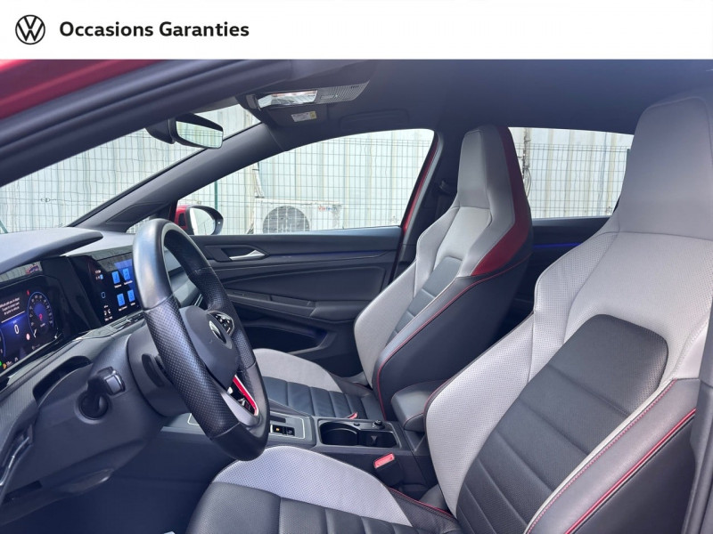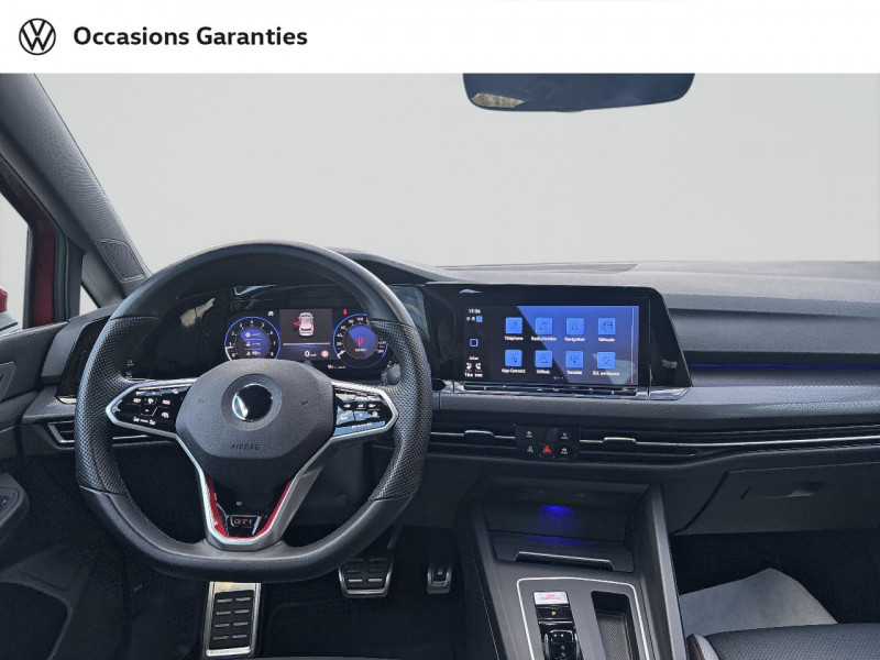 activation automatique du signal de détresse en cas de freinage d'urgence / baguette led / ceintures de sécurité automatiques av 3 points à enrouleur, réglables en hauteur, avec prétentionneurs / e-call service: appel d'urgence manuel ou automatique / eclairage de plancher à led à l'av avec possibilité de sélectionner la couleur d'éclairage / eclairage à led de la plaque d'immatriculation ar / feux ar à led avec clignotants ar défilants / frein de stationnement électromécanique avec fonction d'immobilisation en pente "auto hold" et assistant de démarrage en côte / park assist: système d'assistance au stationnement en créneau et en bataille / projecteurs iq.light - matrix led / rétroviseur intérieur à réglage jour/nuit automatique / système de freinage anti multicollision: ce dispositif freine automatiquement le véhicule après un premier choc afin de limiter le risque de multicollision / système navigation & infotainment "discover media" avec services de streaming et radio via internet via carte esim intégreé, reprenant les fonctionnalités du ?ready 2 discover?, avec en plus système de navigation, affichage de la carte en 2d, trois calculs d'itinéraire possible, affichage des logos des points d'intérets choisis, des limitations de vitesse, des zones de danger et du panneau de sortie d'autoroute arrivant, affichage des limitations spécifiques applicables dans un pays étranger, préparation pour ?we connect? et ?we connect plus? / volant sport multifonction en cuir spécifiqque "gti" palettes au volant, commades tactiles et retour haptique / 2 interfaces usb-c à l'av / 2 prises de chargement usb-c derrière l'accoudoir pour les passagers ar / 2 spots de lecture av et 2 spots ar / accoudoir central ar rabattable avec 2 portes-boissons / accoudoir central av réglable en hauteur et en longueur avec compartiment de rangement / airbags de tête pour passagers av/ar / airbags frontaux av conducteur et passager (airbag passager désactivable) / app-connect sans fil, affichage et contrôle via l'écran tactile de la voiture du contenu, des fonctions et des applications compatibles présents sur le smartphone (compatibilité avec les systèmes apple carplay et android auto). fonction sans fil uniquement disponible avec apple carplay / application décorative "black metal chrome" pour tableau de bord et les revêtements de porte à l'av / assistant de conduite "travel assist" avec "emergency assist" / avertisseur sonore et témoin d'oubli du port de la ceinture de sécuritéà l'av et à l'ar / badges gti sur les ailes av et inscription gti sur le hayon / baguette lumineuse entre les projecteurs / blocage de différentiel d?essieu av "vaq" / cache-bagages amovible / cerclage chromé des commandes des vitres, de réglage des rétroviseurs et des aérateurs / ciel de pavillon noir soul / climatiseur "air care climatronic" 3 zones et filtre anti-allergène et éléments de commandes à l'ar / correcteur électronique de trajectoire esp, amplificateur de freinage d'urgence, antiblocage des roues abs, blocage électronique de différentiel eds, répartiteur électronique de freinage ebv, antipatinage électronique asr, régulateur électronique de couple msr et assistance au contrebraquage / câble adaptateur usb-c vers usb-a / digital cockpit pro : combiné d'instruments digital avec écran digital haute résolution de 10,25" / disques de frein 17" à l'av et à l'ar / eclairage d'ambiance 30 couleurs / eclairage d'ambiance extérieur poignées de portes éclairées et éclairage périmétrique avec projection du logo / eléments de carrosserie spécifiques "gti" / essuie-glace ar intermittent avec lave-glace / etriers de frein rouge à l'av et à l'ar / fatigue detection : système de détection de fatigue du conducteur qui analyse le comportement du conducteur et recommande un temps de repos par l'apparition d'un message visuel et sonore / feu ar de brouillard d'un côté, feux de recul des deux côtés / front asisst avec détecteur des piétons / indicateur de température extérieure avec avertisseur de gel / interface téléphone bluetooth / keyless access advanced sans alarme : système de verrouillage/déverrouillage et de démarrage sans clé / kit de dépannage : compresseur 12 v et produit d'étanchéité de pneu / lane assist: assistant de maintien dans la voie / liseré rouge dans la calandre et les phares / mesures supplémentaires de protection des piétons / miroirs de courtoisie éclairés dans les pare-soleils / oeillets d'arrimage isofix (dispositif pour fixation de 2 sièges-enfants sur la banquette ar) / pare chocs ar spécifiques gti, prise d'air en structure nid d'abeilles à l'av / pare-chocs, boîtiers de rétroviseurs extérieurs et poignées de portes dans la couleur carrosserie / prise 12 v dans le coffre / préparation pour "vw connect" et "vw connect plus" vous permet d'obtenir des informations sur votre véhicule directement sur votre smartphone. application totalement gratuite et facile à utiliser. produit 100% compatible avec votre volkswagen et garantie constructeur préservée. aperçu de toutes les données de votre véhicule et des prochaines maintenances à effectuer. sécurité totale des données grâce à un cryptage / pédalier et repose-pied en acier inoxydable brossé / rangement et prise 12 v à l'av / rear assist: caméra de recul avec visualisation de la zone située à l'ar du véhicule / revêtement de porte et latéral en feuille de mousse et tissu / réglage du site des phares, manuel / régulateur de vitesse adaptatif et prédictif acc avec limiteur de vitesse / rétroviseurs extérieurs à réglage, rabattement et dégivrage électriques, avec fonction mémoire / service d'appel d'urgence (inclus 10 ans et disponible indépendamment de l?inscription dans le système d?infotainment) / sièges av sports specifique gti, appui-tetes intégrés, appuis lombaires av / sortie d'echappement chromée à droite et à gauche