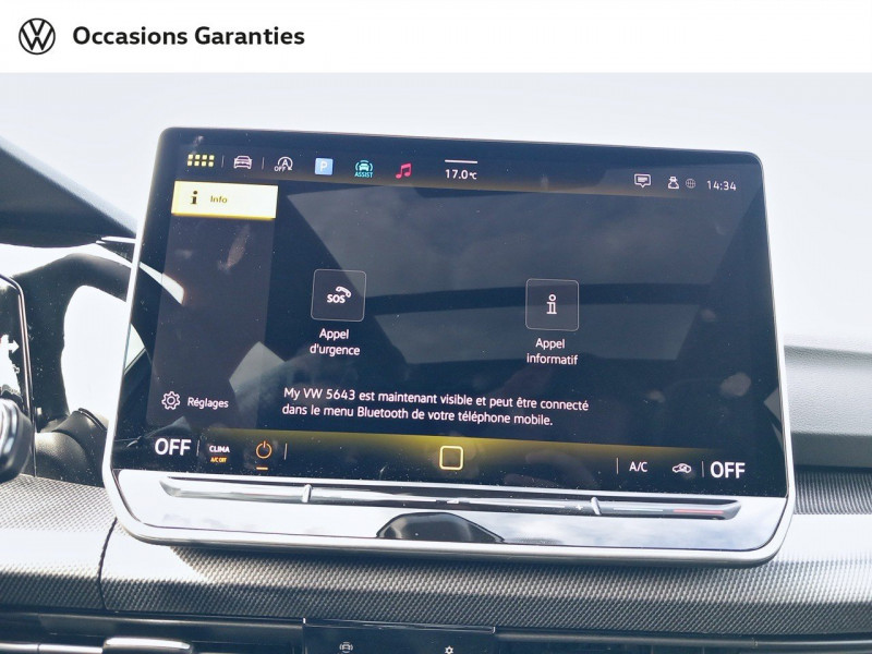 activation automatique du signal de détresse en cas de freinage d'urgence / ceintures de sécurité automatiques av 3 points à enrouleur, réglables en hauteur, avec prétentionneurs / climatisation "air care climatronic" 3 zones et filtre anti-allergène et éléments de commandes à l'ar / ecall : appel d'urgence manuel ou automatique / eclairage de la plaque d'immatriculation ar à led / eclairage de plancher à led à l'av avec possibilité de sélectionner la couleur d'éclairage / frein de stationnement électromécanique avec fonction d'immobilisation en pente "auto hold" et assistant de démarrage en côte / front assist système de surveillance périmétrique avec fonctions de freinage d'urgence en ville et détection des piétons. contribuant à la prévention des collisions, ce système freine automatiquement le véhicule en cas de détection d?obstacle aussi bien en ville que sur autoroute. le système conditionne au préalable l'assistance au freinage d?urgence et incite le conducteur à freiner de lui-même grâce à un message visuel et sonore ainsi qu'une courte impulsion de freinage. / jantes en alliage léger 17" " coventry" avec pneumatiques 225/45 r17 / park pilot : système d'aide au stationnement av/ar avec signaux sonores et visualisation de la distance des obstacles sur l'écran / projecteurs led plus feux de braquage et éclairage tous temps, logo volkswagen éclairé à l'av, bandeau lumineux à l'av entre les projecteurs et poignées concaves de porte éclairées, pack 'eclairage & visibilité' avec régulation automatique des feux 'light assist', projecteurs led plus / régulateur de vitesse adaptatif et prédictif acc avec limiteur de vitesse détecte dans les limites du système et à l'aide d'un capteur radar les véhicules qui précèdent et maintient la distance en intervenant sur les freins et l'accélérateur (régulation active, de 0 à 210 km/h ; jusqu?à l'arrêt du véhicule). le conducteur peut calibrer la distance souhaitée par rapport aux autres automobilistes / régulation automatique des feux de route "light assist" / rétroviseur intérieur à réglage jour/nuit automatique / sign assist: reconnaissance des panneaux de signalisation et affichage sur le 'digital cockpit' et l'écran du système de radionavigation / système de freinage anti multicollision: ce dispositif freine automatiquement le véhicule après un premier choc afin de limiter le risque de multicollision / système de navigation & infotainment "discover" avec "services de streaming et radio via internet" via carte esim intégrée, radio 7 hp et écran couleur tactile 12,9" avec projection de la cartographie dans l'écran du "digital cockpit pro" / 2 interfaces usb-c à l'av et 2 prises de chargement usb-c derrière laccoudoir pour les passagers ar / accoudoir central ar rabattable avec 2 portes-boissons / accoudoir central av réglable en hauteur et en profondeur avec compartiment de rangement / airbag central entre les sièges av / airbags de tête pour passagers av/ar / airbags frontaux av conducteur et passager (airbag passager désactivable) / app-connect sans fil affichage et contrôle via l'écran tactile du véhicule, du contenu, des fonctions et des applications compatibles présents sur le smartphone (compatibilité avec les systèmes apple carplay et android auto) / application décorative "carbon grey" pour tableau de bord et les revêtements de porte av / appui-tête réglables en hauteur sur les sièges av et ar / appuis lombaires réglables à l'av / avertisseur sonore et lumineux pour ceintures non attachées av et ar / baguette lumineuse entre les projecteurs / bas de caisse et spoiler spécifiques r-line / cache-bagages amovible / calandre spécifique r-line laquée noire avec monogramme "r" / cerclage chromé des commandes des vitres, de réglage des rétroviseurs et des aérateurs / commande vocale (ida) avec amplificateur de voix électronique / correcteur électronique de trajectoire esp, amplificateur de freinage d'urgence, système d'antiblocage de roues abs, blocage électronique du différentiel eds, répétiteur électronique de différentiel ebv, antipatinage électronique asr et régulateur de couple msr et assistance au contrebraquage / digital cockpit pro : combiné d'instruments digital avec écran digital haute résolution de 10,25" / eclairage d'ambiance extérieur poignées de portes éclairées et éclairage périmétrique avec projection du logo / emergency assist / essuie-glace ar intermittent avec lave-glace / fatigue détection : système de détection de fatigue du conducteur qui analyse le comportement du conducteur et recommande un temps de repos par l'apparition d'un message visuel et sonore / feu ar de brouillard d'un côté, feux de recul des deux côtés / indicateur de température extérieure avec avertisseur de gel / interface téléphonique bluetooth avec fonction de charge inductive / kit de dépannage : compresseur 12 v et produit d'étanchéité de pneu / lane assist: assistant de maintien de trajectoire qui corrige, dans la limite du système, le mouvement du volant avant que le véhicule dépasse involontairement la bande de roulement. système actif à partir de 65 km/h / logo vw éclairé av / mesures de protection des piétons supplémentaires / miroirs de courtoisie éclairés dans les pare-soleils / oeillets d'arrimage isofix (dispositif pour fixation de 2 sièges-enfants sur la banquette ar) / pare chocs av et ar spécifiques r-line / pare-chocs, boîtiers de rétroviseurs extérieurs et poignées de portes dans la couleur de la carrosserie / prise 12 v dans le coffre / préparation pour "vw connect" et "vw connect plus" / pédalier et repose-pied en acier inoxydable brossé / rampes de pavillon noires / rangement et prise 12 v à l'av / revêtement de porte et latéral en feuille de mousse et tissu / réglage du site des phares / rétroviseurs extérieurs avec fonction mémoire, rabattables/réglables électriquem