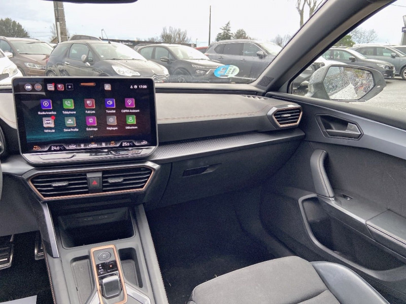 lane assist / phase 2 / full led plus / virtual cockpit / système de navigation 12" avec écran tactile / combiné d'instruments digital / jantes alu 18" performance diamantées / pre crash assist / travel assist / feux antibrouillards av avec clignotants intégrés / climatronic / full link / rétroviseur jour/nuit automatique / fonction coming/leaving home / cupra connect / chargeur à induction pour smartphone / assistance aux feu de route et dynamique / clignotants dynamiques / 2 isofix et toptether à l'arrière / frein de stationnement électromécanique / esc / front assist / détection des piétons / capteur de fatigue du conducteur / supports lombaires ajustables / eclairage ambiant intérieur / sélection du profil de conduite / prise 12v à l'avant / 7 hauts parleurs / 2 usb c à l'avant / 2 usb c à l'arrière / voeu / trafic sign recognition / side assist / l'exist assist & l'exit warning / volant chauffant