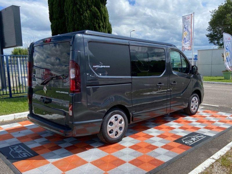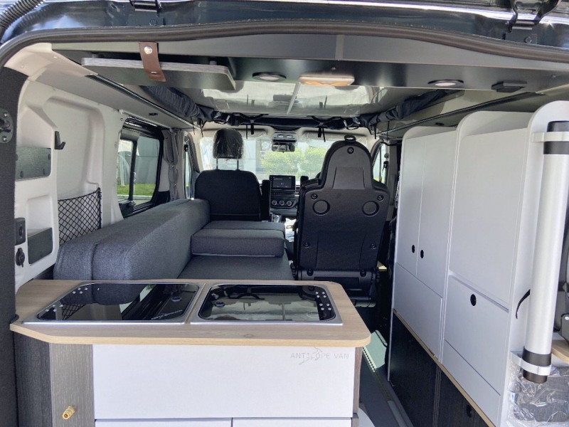 antilope van flex plus / grand toit relevable antilope van / isolation thermique et phonique prémium des parois latérales / plancher / passages de roue. / table multifonctions : table d'appoint / repose pieds coulissante sur rail / . chauffage webasto 2000 w avec kit altitude / meubles antilope van en stratifiéépais / cuisine. entièrement équipée / douchette extérieure / wc intégré avec son espace de rangement dédié / volume rangements : 550l / réservoir d'eau propre isolé : 40l / . réservoir d'eau usée isolé : 20l / batterie lithium 60ah / panneau solaire 190w / booster dc/dc chargeur ac/dc 220v + prise extérieure / 2 prises intérieures. 220v / convertisseur 12/220v 700w 1 prise 220 / Éclairages à leds basse consommation / 2 liseuses usb amovibles / . couchage bas confortable et parfaitement plat: 190x130cm / rideaux d'occultation / thermiques amovibles / combi Évier / réchaud feu gaz avec piezzo électrique. / thermocouple et abattant de protection en verre trempé / cuisine accessible de l'intérieur et de l'extérieur avec grand plan de travail et tablette / réfrigérateur. 30l à compression / poubelle intégrée / tapis antidérapants dans tiroir et zones de rangements / table amovible intérieur/extérieur adaptée / grand coffre sous. banquette 145 l - tente de hayon / auvent latéral de 5m2 / tapis de sol "antilope van" / 2 sièges de camping / adaptateur prise extérieur / . Équipements véhicule : peinture intégrale / roue 16" enjoliveurs maxi / Éclairage full led / hayon arrière vitré dégivrant / baies latérales. arrières gauche et droite vitrées coulissantes surteintés "dark privacy" / stop & start -esp + extended grip / pack confort +: caméra de recul +. radars de stationnement ar/av et latéraux / eclairage feux et essuie-vitres automatique / super condamnation centralisée des portes avant et arrières avec. télécommande / sièges conducteur/passager avec accoudoirs / sellerie premium java noir / "coffre discrétion". sur planche de bord avec ports usb / harmonie intérieure luxe: volant en tep / planche de bord noir titane avec cerclages chromés / tableau de bord analogique. 4"2 + ordinateur de bord / commandes au volant / pack multimedia easy link 8": ecran tactile 8" / radio dab / port usb / bluetooth / prise jack / smartphone. réplication android auto et apple carplay / lève vitre impulsionnel côté conducteur