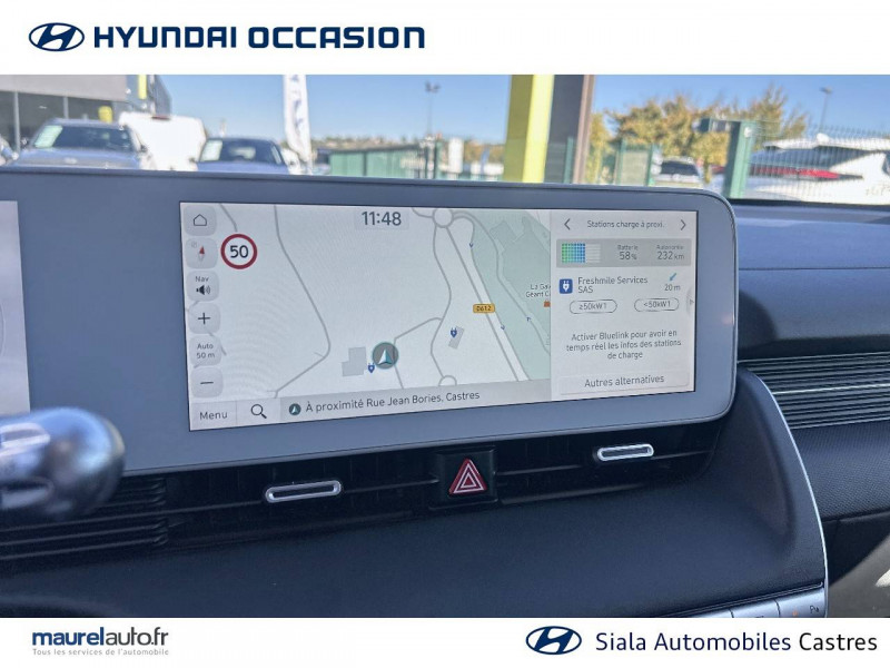 abs, ebd et afu / accoudoirs av/ar / alarme périmétrique / alerte de circulation transversale ar avec fonction freinage / alerte de présence de passager ar / antenne de toit type requin en effet verre / assistance active à la conduite sur autoroute / assistance active au maintien et au suivi de voie / assistance à la sortie du véhicule / boîte à gants coulissante type "tiroir" / câble de recharge pour prise domestique / cache-bagages à enrouleur / caméra de recul avec lignes de guidage dynamiques / capteur de désembuage automatique du pare-brise / chargeur embarqué tri-phasé 11kw / chargeur sans fil pour téléphone compatible / compteurs numériques 12,3" / console centrale av coulissante / console centrale avec bac de rangement sous l'accoudoir av / contrôle de trajectoire électronique esp avec gestion de stabilité pour remorque / détection de fatigue du conducteur / direction assistée électrique asservie à la vitesse / drive mode (eco, normal, sport et neige) / ecall : appel d'urgence automatique aux services de secours avec géolocalisation du véhicule / eclairage intérieur à led personnalisable / feux ar à led type "pixel" / feux de jour et de position av à led type "pixel" / feux de route intelligents / filet de coffre / freinage anti multi-collisions / freinage d'urgence autonome avec fonction intersections / freinage d'urgence autonome avec reconnaissance piétons et cyclistes / freinage régénératif intelligent / frein de parking électrique avec fonction auto-hold / hayon mains-libres intelligent / jonc de vitres noir / kit de réparation / ouïes de ventilation ar / palettes de freinage régénératif modulable au volant (avec fonction i-pedal) / poches aumonières au dos des sièges av / poignées de portes extérieures rétractables manuelles / poignées de portes intérieures grain métal / porte-gobelets av/ar / prise combo type 2 - 350 kw / prise type 2 - 11 kw / programmation de la recharge et de la ventilation / protections av/ar, ligne de bas de caisse et passages de roue noirs / protections de seuils de portes grain métal / rétroviseurs électriques dégivrants, rabattables électriquement avec clignotants intégrés / rétroviseurs extérieurs couleur carrosserie / rétroviseurs intérieur jour/nuit automatique / revêtement de tableau de bord et contre-portes en similicuir avec surpiqûres / sellerie cuir (dossier et assise) / services connectés bluelink avec carte sim incluse / siège conducteur avec support lombaire électrique / siège passager avec support lombaire électrique / sièges ar inclinables / surveillance des angles morts avec assistance active au changement de voie / système audio rds, mp3, 4 hps, 2 tweeters / système d'accès mains-libres et démarrage sans clé / système de chauffage de la batterie / système de navigation europe avec programme de mise à jour de la cartographie / système de préconditionnement de la batterie / système isofix pour siège enfant aux places latérales ar / système multimédia avec écran couleur tactile 12,3" avec reconnaissance vocale en ligne / transmission à commande électrique / verrouillage automatique des portes en roulant / vide-poches dans portes av/ar / vitres électriques av et ar (séquentielles à l'av) / volant chauffant