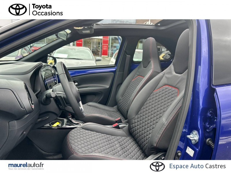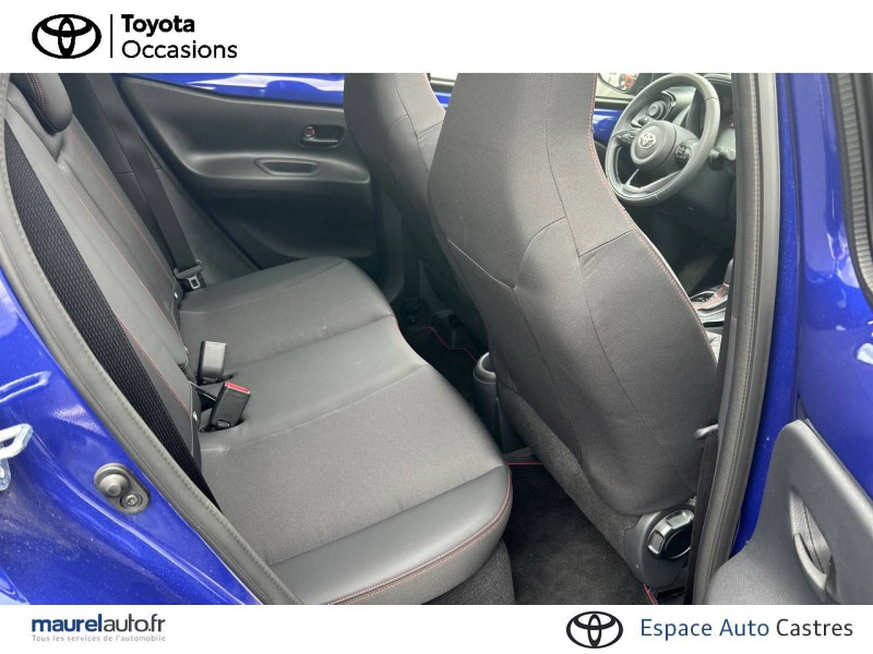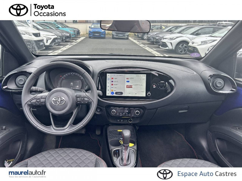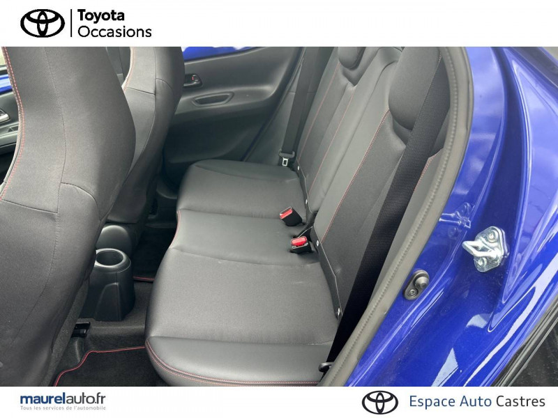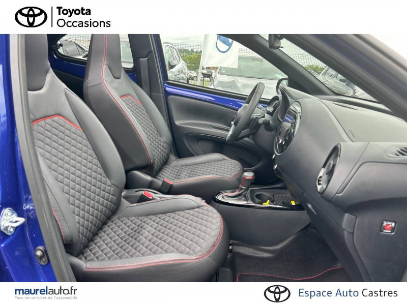 1 port usb de type c sur console centrale / 1 prise 12v av sur console centrale / 4 hp / branche centrale du volant noir laqué / calandre noir laqué / capote en toile découvrable electriquement / carrosserie bi-ton avec toit et piliers peints en noir / ciel de toit noir / combiné d'instrumentation avec écran couleur tft multifonction 4,2" / compte-tours / connectivité smartphone apple carplay et android auto sans fil / contour d'aérateurs noir laqué / contour de console central noir laqué avec insert gris anthracite / contour de l'écran tactile noir laqué avec décoration gris anthracite / contour de levier de vitesses couleur carrosserue avec traitemenet anodisé / coques de rétroviseurs noires / eclairage de coffre / entourage d'antibrouillards noir laqué / essuie-glace av à détecteur de pluie / fermeture centralisée avec commande à distance / feux av à extinction différée (follow me home) / indicateur de perte de pression des pneus / insert de pare-chocs ar couleur carrosserie / insert inférieur de l'écran tactile 10,5" noir laqué avec décoration gris anthracite / inserts sur contours et bas de caisse av/ar (selon couleur carrosserie) : noir laqué / jantes en alliage 18" noir mat avec, selon couleur carrosserie, inserts rouge piment / kit anti-crevaison / kit de sécurité / levier de vitesse en cuir avec surpiqûres couleur carrosserie / ornements latéraux noirs (partie supérieure du bas de caisse) / passages de roues et bas de caisse latéraux noirs / poignées de portes extérieurs couleur carroserie / porte-gobelets (2) / rétroviseurs extérieurs électriques, dégivrants et rabattables manuellement / sellerie mi-cuir avec renforts latéraux en cuir véritable et assise et dossier en tissu avec surpiqûres couleur carrosserie / services connectés de contrôle à distance mytoyota (inclus 4 ans) / services connectés standards mytoyota (inclus 10 ans) / système d'appel d'urgence automatique "e-call" / système de contrôle de stabilité (vsc) + système de contrôle de motricité (trc) / système de freinage antiblocage abs / système d'ouverture/fermeture et démarrage sans clé "smart entry & start" / système multimédia toyota smart connect avec écran tactile 10,5" haute définition, bluetooth, usb, radio fm et dab (digitale), système de connectivité smartphone apple carplay et android auto (sans fil), services intelligents avec navigation connectée avec infotrafic en temps réel, mises à jour cartographiques, assistant vocal "hey toyota" et recherche de points d'intérêts (inclus 4 ans) / tapis de sol av/ar avec surpiqûres couleur carrosserie / toyota safety sense système de sécurité précollision avec détection des véhicules, piétons et cyclistes, actif également dans les intersections. alerte de franchissement de ligne avec aide au maintien dans la file, assistant de trajectoire et détecteur de fatigue, lecture des panneaux de signalisation avec limiteur de vitesse, gestion automatique des feux de route, régulateur de vitesse adaptatif intelligent / transmission automatique s-cvt avec commande de boîte de vitesses séquentielle / volant cuir avec commandes au volant