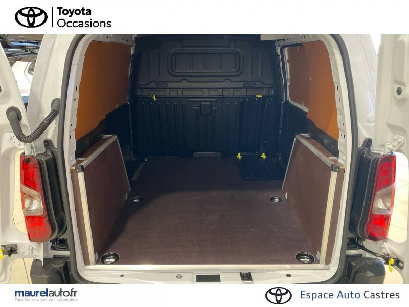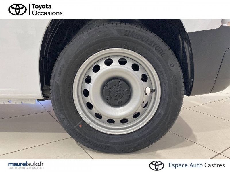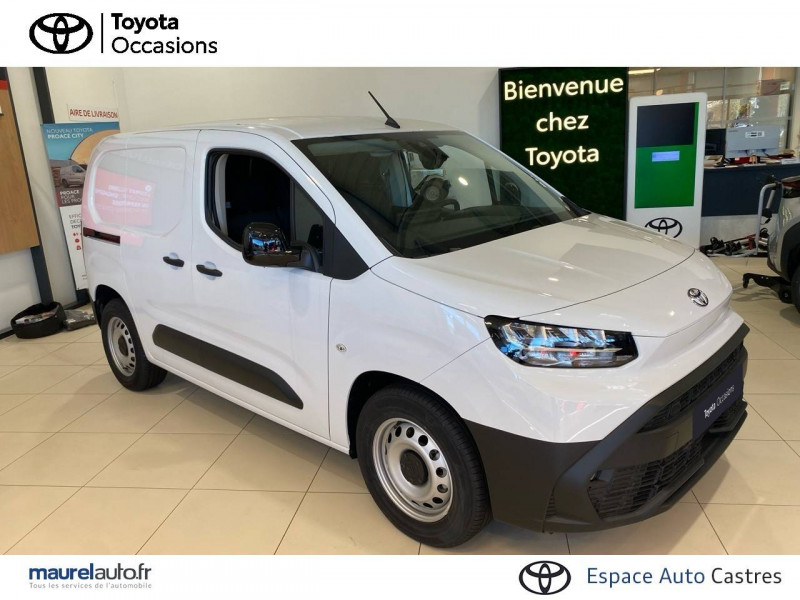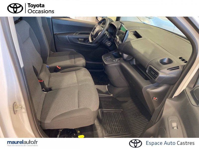 2 clés télcommandes / 2 places / 2 usb-c (charge), 1 usb-a (données + charge) / 6 crochets d'arrimage dans l'espace de chargement / abs, esp, tcs / airbags conducteur et passagers frontaux, rideaux et latéraux / boîte à gants inférieure ouverte côté passager / boîte automatisée à variation continue / câble de recharge mode 2 pour prise domestique - 6 m / câble de recharge mode 3 pour borne électrique - 7,5 m / capucine de rangement supérieure / chargeur embarqué 11 kw / charge utile 800 kg / cloison pleine tôlée fixe / combiné d'instrumentation monochrome standard / coques de rétroviseurs extérieurs noires / eclairage dans la zone de chargement / essuie-vitre av manuel / e-toggle / frein de stationnement électrique / indicateur de perte de pression des pneus / jantes en acier 16" grises avec cabochons / kit de produits d'entretien "toyota car care" / kit de sécurité / marteau de sécurité brise-vitre / pare-chocs av/ar en plastique noir / peinture opaque / plafonniers av / plancher en bois dans la zone de chargement / pneumatiques 215/65 r16 102h / poignées de portes interieures noires / poignées des portes extérieures en plastique noires / portes ar battantes tôlées 60/40 avec ouverture à 180° / prédispositif barres de toit / programme toyota expérience dimininution de la sinistralité, réduction de l´empreinte carbone, réduction de la consommation, optimisation des coûts, sécurisaton et gestion des charges, aide à la prise en main d´un véhicule électrique / protections latérales en plastique noir / sac de rangement pour câbles de recharge / sellerie tissu gris / siège conducteur avec réglage manuel longueur, hauteur et inclinaison du dossier, avec support lombaire et accoudoir / siège passager individuel ajustable manuellement / système d'appel d'urgence automatique e-call / système de sécurité toyota safety sense / système radio am, fm et numérique (dab) avec écran tactile monochrome 5", connectivité bluetooth et commandes audio au volant et 4 hp / tapis de sol av caoutchouc / toyota safety sense système de sécurité précollision, lecture des panneaux de signalisation, détecteur d'attention du conducteur, aide au maintien dans la voie avec correction de la direction, gestion automatique des feux de route. / volant et levier de vitesses en uréthane