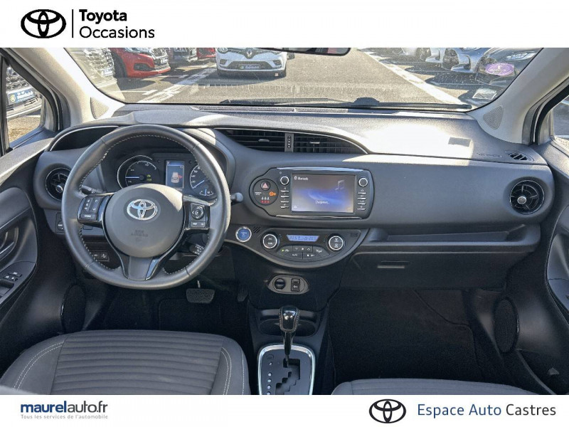 7 airbags (frontaux, lateraux, rideaux et un protège-genoux conducteur) / abs, ebd et ba / aumônière de siège côté passager / baguette de coffre en chrome satiné / boîte automatique e-cvt / calandre inférieure noire laquée / calandre supérieure avec insert chrome satiné / carrosserie monoton / cerclages des aérateurs et branches volant noirs laqués / diffuseur ar noir / double plancher du coffre / ecran tft couleur 4,2" / fermeture centralisée des portes avec télécommande / finition chrome satiné (haut-parleurs, commandes de climatisation, entourage de levier de vitesses et inserts toyota touch 2) / follow me home (feux av à extinction différée) / frein ar à disques / indicateur de perte de pression des pneus / jantes alliage 15" "hokkaido" / kit de réparation anti-crevaison / peinture blanc pur / planche de bord "soft touch" / poignées de portes et rétroviseurs extérieurs couleur carrosserie / projecteurs halogènes avec feux de jour / sellerie tissu mabillon / système de contrôle de stabilité (vsc) + système de contrôle de motricité (trc) / toyota safety sense système de sécurité précollision avec détection des piétons, alerte de franchissement de ligne et détecteur de fatigue, gestion automatique des feux de route, lecture des panneaux de signalisation, régulateur de vitesse adaptatif. / toyota touch 2 / volant avec insert noir brillant / volant, frein à main et pommeau de levier de vitesses gainés cuir perforé avec surpiqûres gris